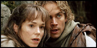 Conveniently, the group has exactly six hours (complete with an honest-to-goodness electronic time clock) to find their teacher and zap back to the present day. While this could have been achieved in ten minutes flat, "Timeline" pushes one far-fetched complication after the next at its audience, both testing the viewers' patience and underestimating their intelligence. Amidst the death-defying craziness, Chris, Kate, and Marek find time to perform in a violent battle between the French and English, outwitting real-life knights in the process; Marek falls in love with soon-to-be-ill-fated native Lady Claire (Anna Friel), and makes a life-altering decision based on his undying feelings; and Chris and Kate work out their own romantic queries. The climactic fireball battle sequence, although workmanlike, seems positively quaint in today's age of "The Lord of the Rings." Meanwhile, both romantic subplots are implausibly written (by Jeff Maguire and George Nolfi), thin as a cucumber, and generate roughly as much heat as the glaciers of Antarctica.